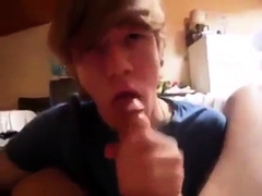 Hot boy selfsucking and spitting his cum