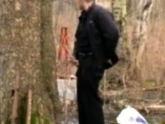 2 guys wanking down the woods