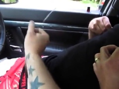 Sucking a cock seated in his car