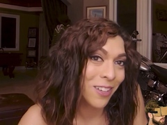 Blackhair Latin tgirl sucks before sex